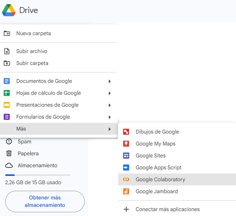 Otra forma de crear un Colab Notebook es desde Google Drive.